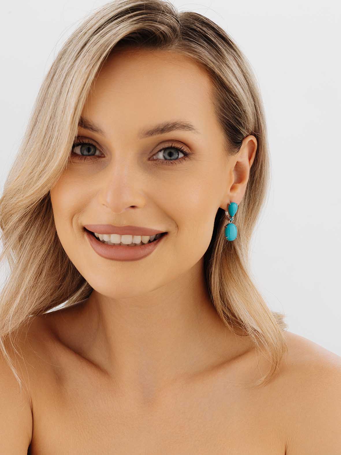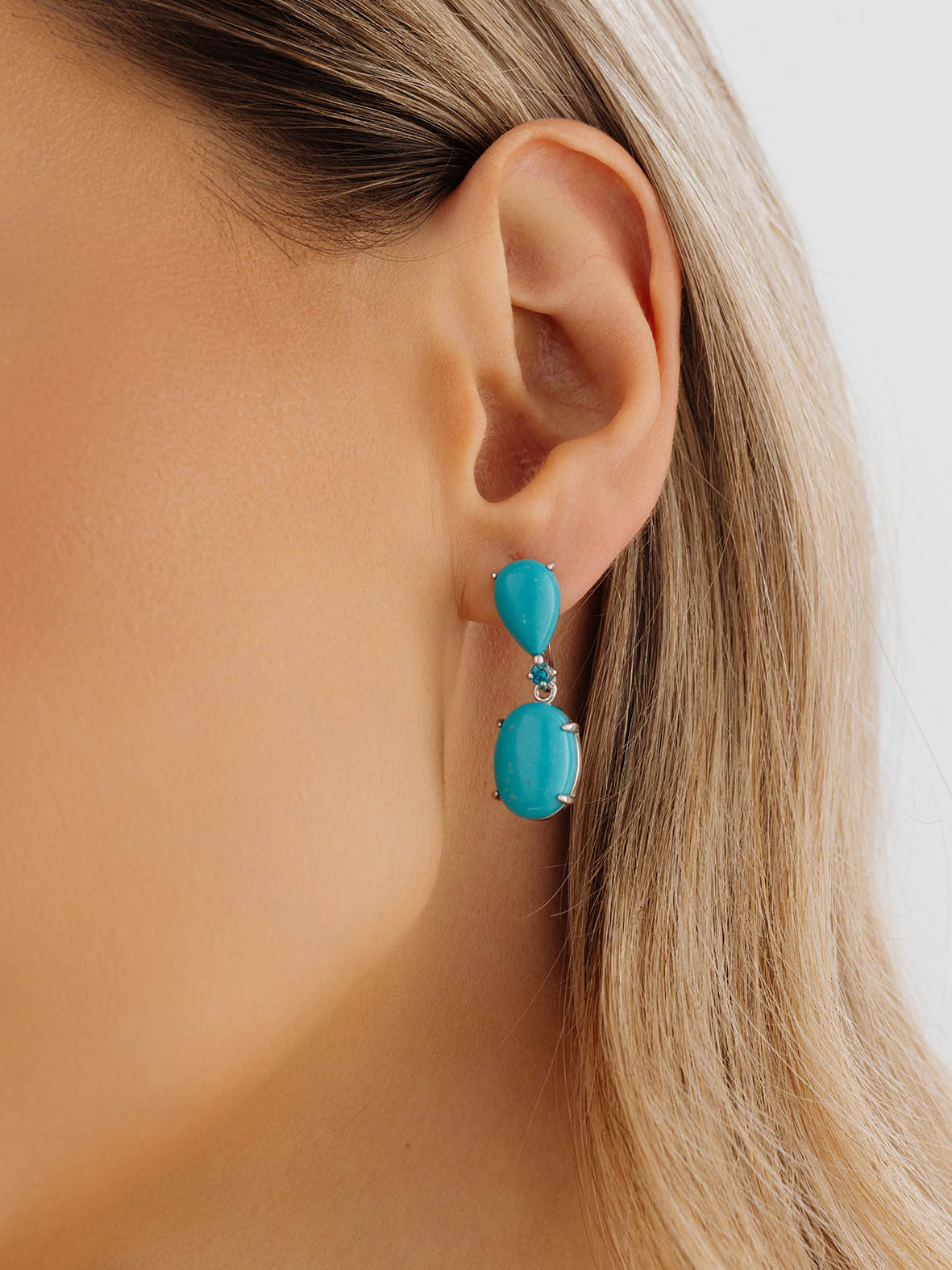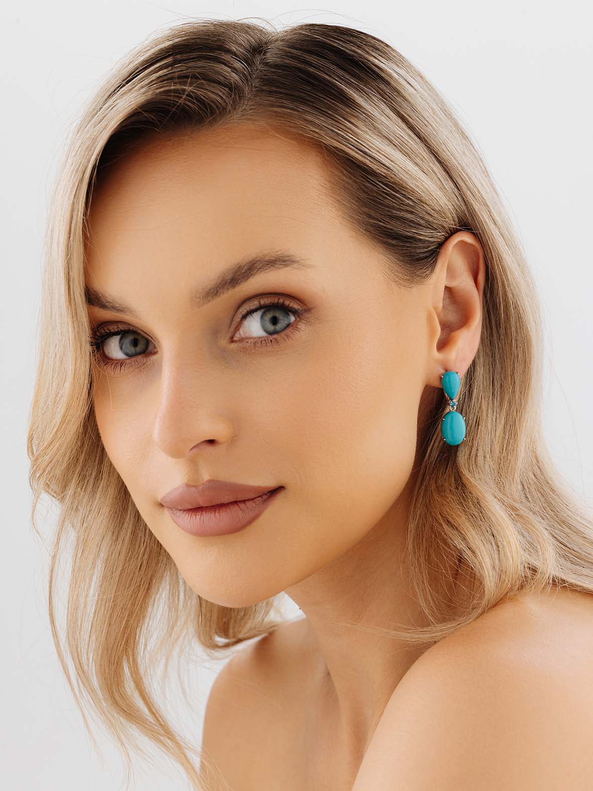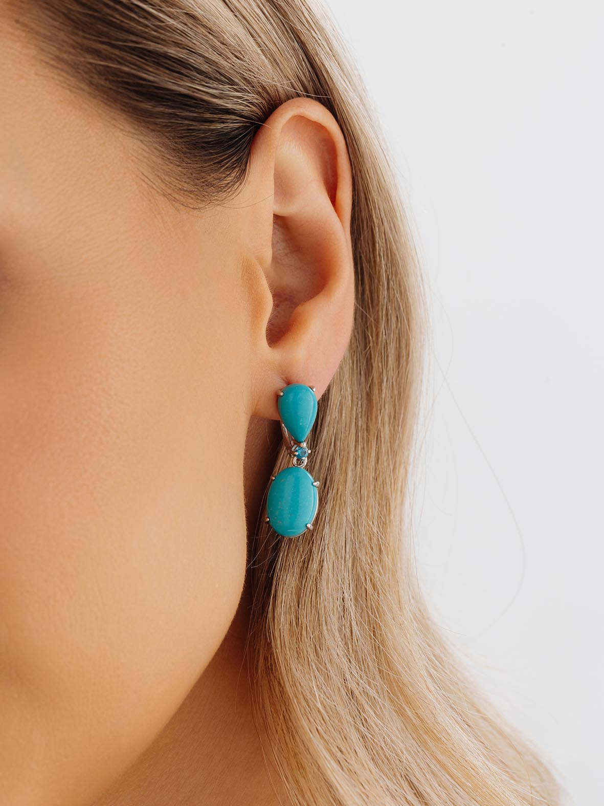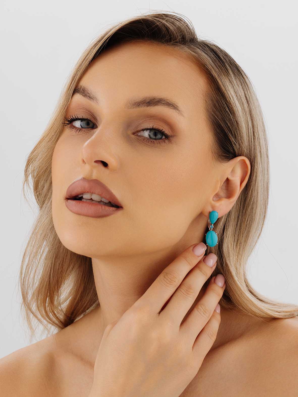 Серьги для женщин из серебра 925 пробы с ситаллами,бирюзой из коллекции Уральские самоцветы артикул 2340311434-78 от компании KRASNOE
