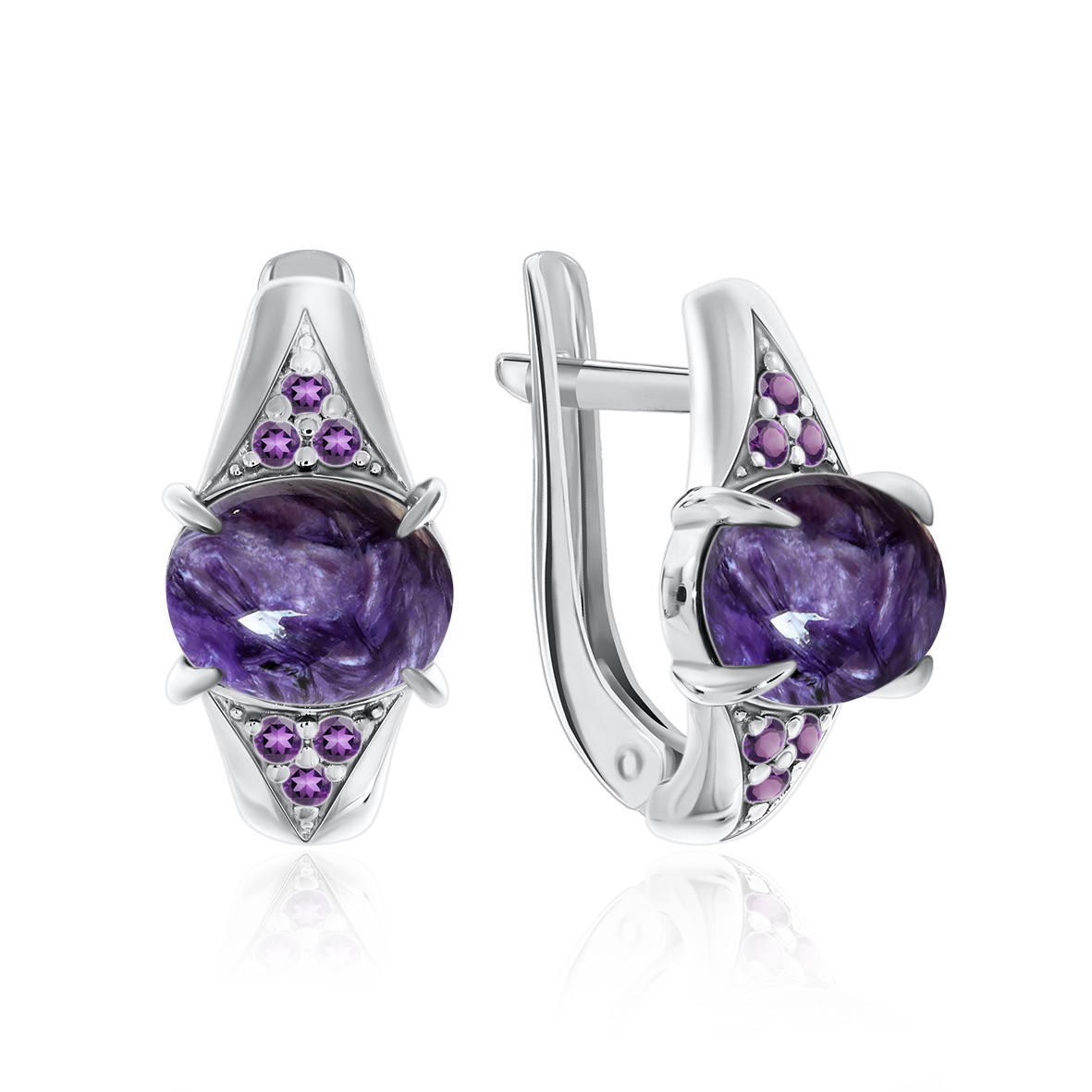 Серьги для женщин из серебра 925 пробы с чароитами,ситаллами из коллекции Созвездие артикул 2348460372л-92 от компании KRASNOE