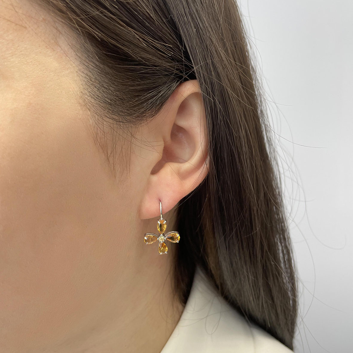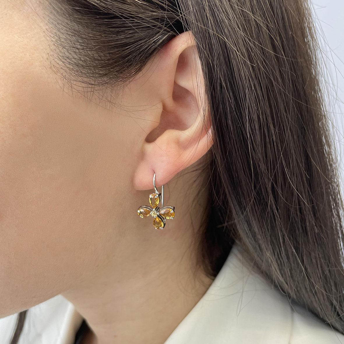 Серьги для женщин из серебра 925 пробы с цитринами артикул 2340111090
