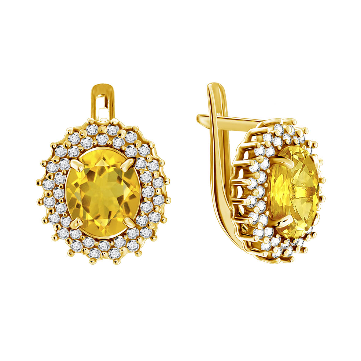 Серьги для женщин из серебра 925 пробы с цитринами,фианитами из коллекции Royals артикул 2318850145л от компании KRASNOE