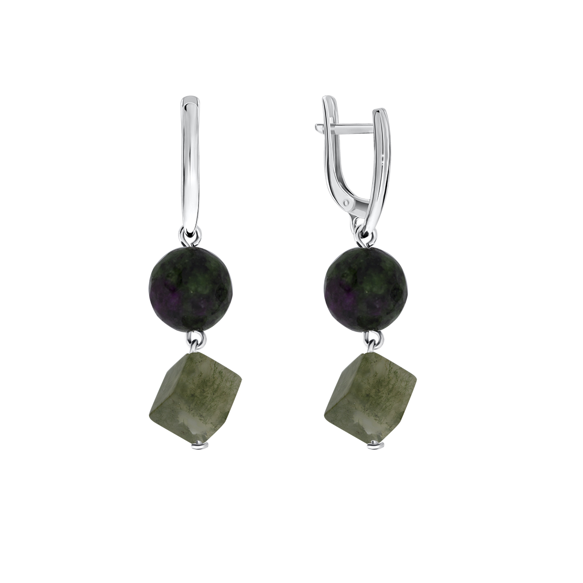 Серьги для женщин из серебра 925 пробы с цоизитами,агатами из коллекции Грани артикул 2340870687-11 от компании KRASNOE