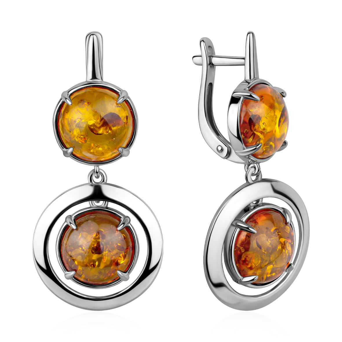 Серьги для женщин из серебра 925 пробы с янтарем из коллекции Уральские самоцветы артикул 2340486371 от компании KRASNOE