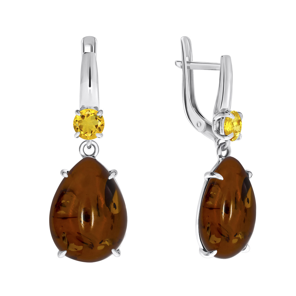 Серьги для женщин из серебра 925 пробы с цитринами,янтарём из коллекции Уральские самоцветы артикул 2340480502 от компании KRASNOE