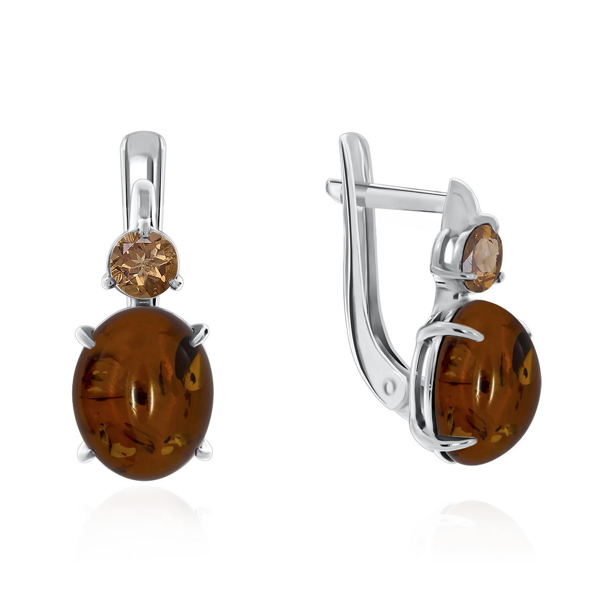Серьги для женщин из серебра 925 пробы с фианитами,янтарём из коллекции Созвездие артикул 2340860367 от компании KRASNOE