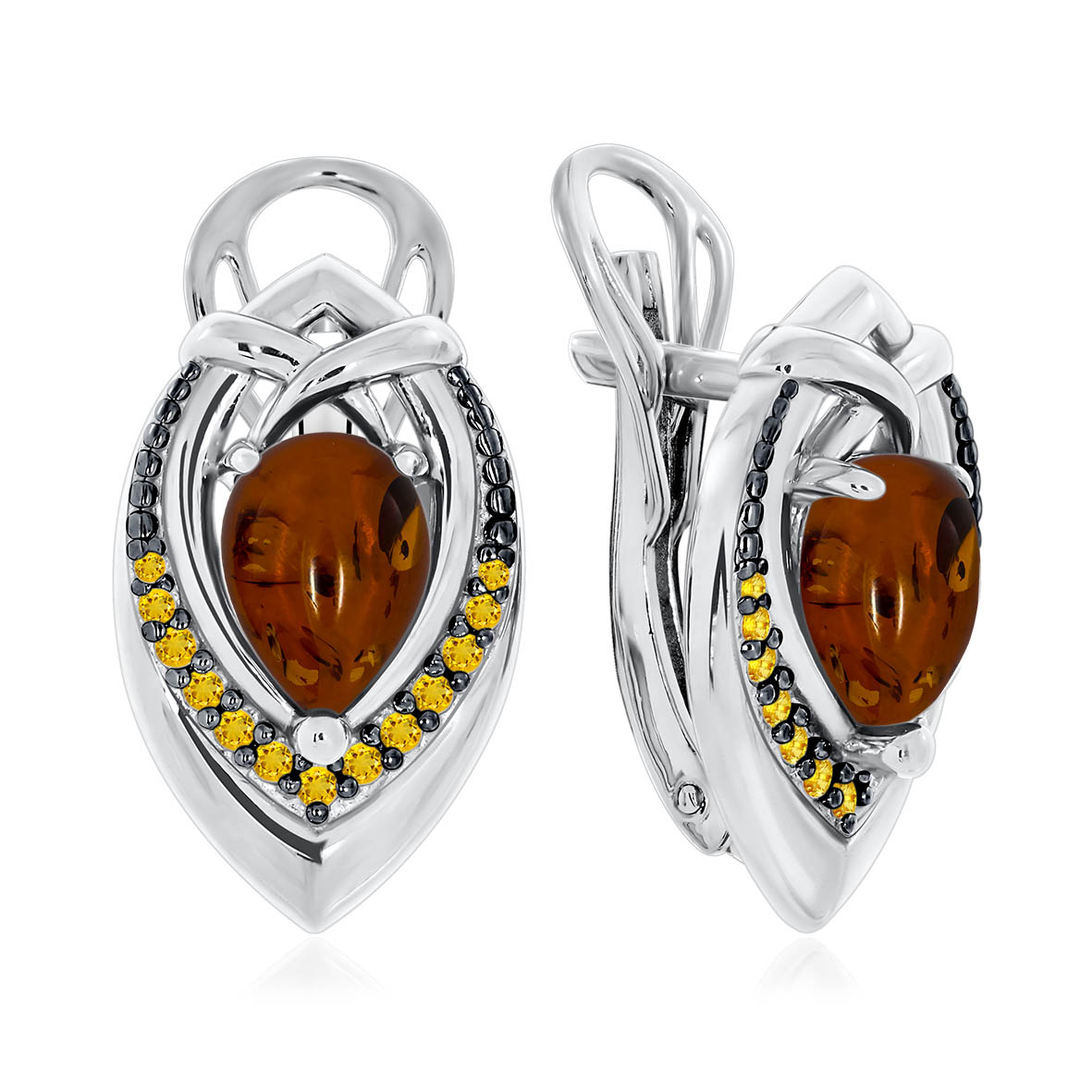 Серьги для женщин из серебра 925 пробы с янтарем,ситаллами из коллекции Медина артикул 2348860948-50 от компании KRASNOE