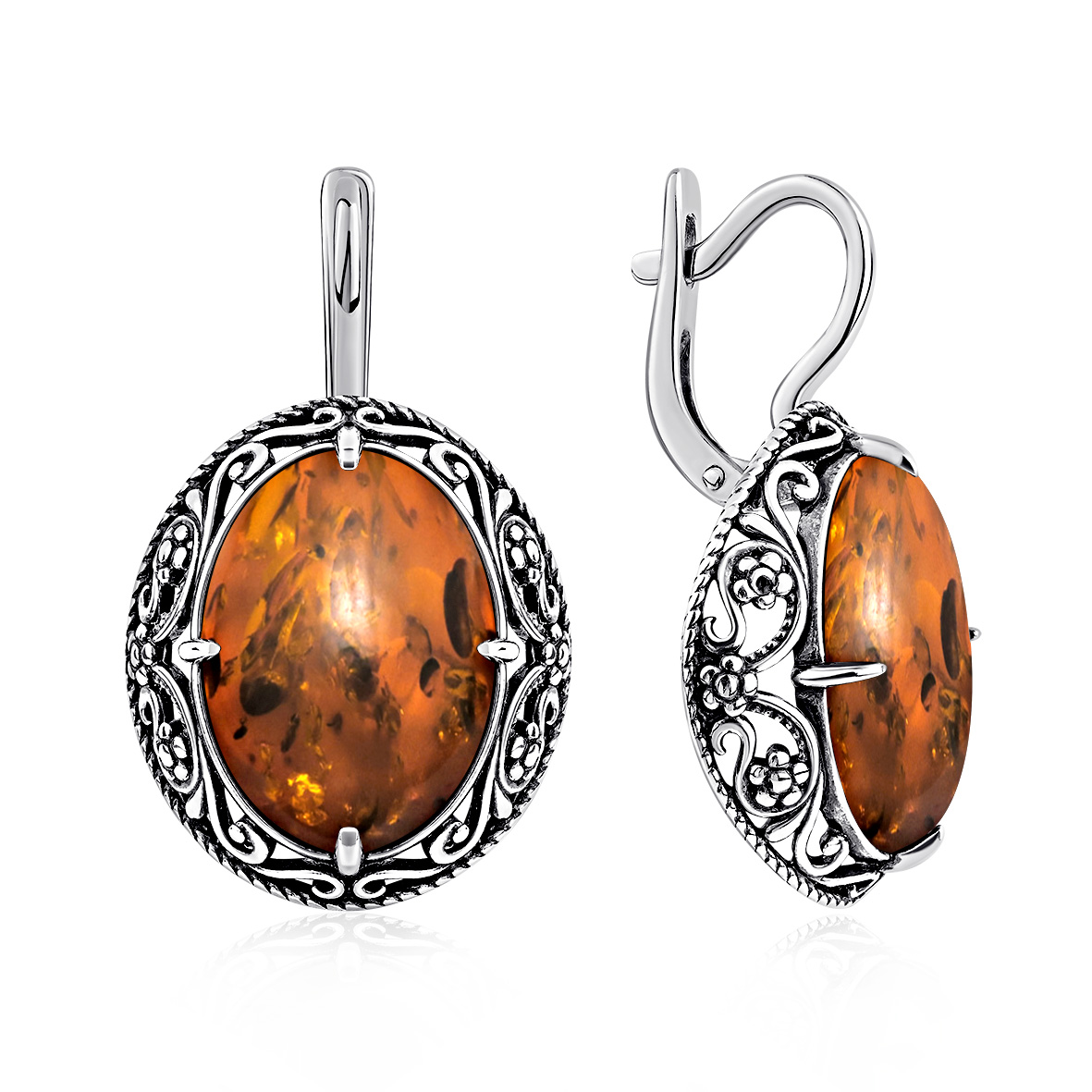 Серьги для женщин из серебра 925 пробы с янтарем из коллекции Филигранная (рабочее название) артикул 2310485087 от компании KRASNOE