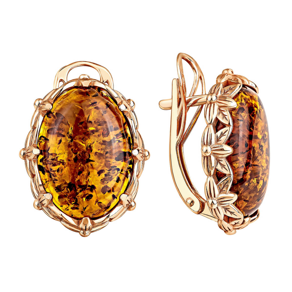 Серьги для женщин из серебра 925 пробы с янтарём из коллекции Flowers (рабочее название) артикул 2320485095 от компании KRASNOE
