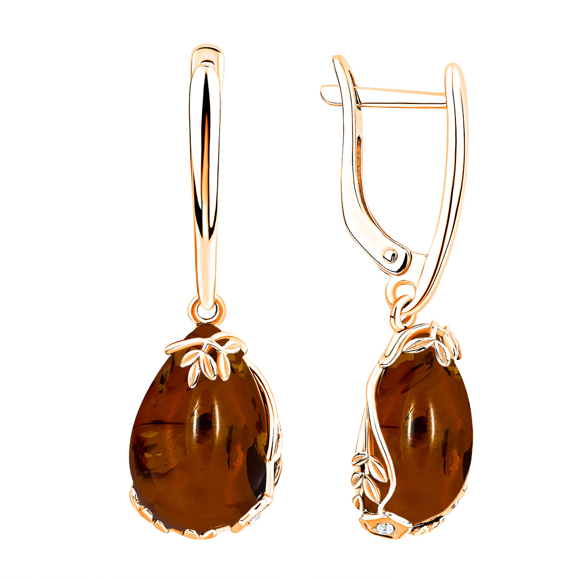 Серьги для женщин из серебра 925 пробы с фианитами,янтарём из коллекции Уральские самоцветы артикул 2320485052 от компании KRASNOE