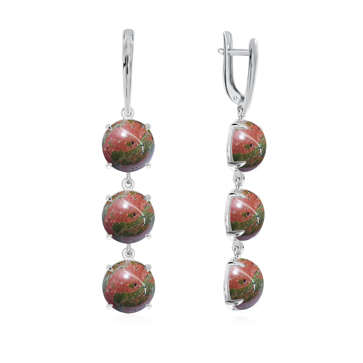 Серьги для женщин из серебра 925 пробы с яшмой из коллекции Уральские самоцветы артикул 2340302301 от компании KRASNOE