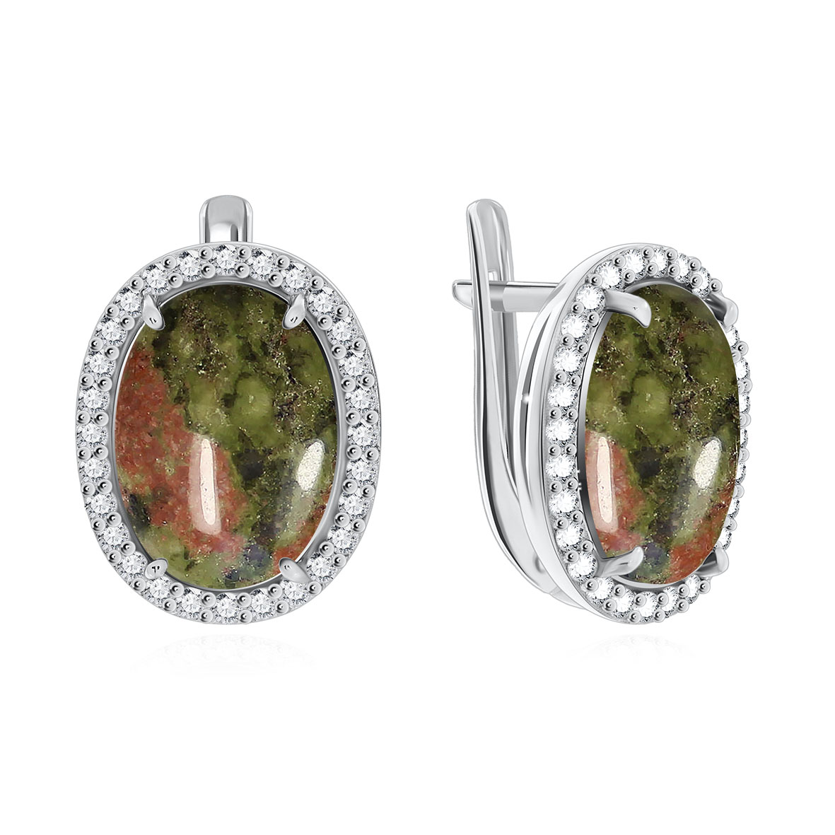 Серьги для женщин из серебра 925 пробы с яшмой,фианитами из коллекции Ирида артикул 2340300253 от компании KRASNOE