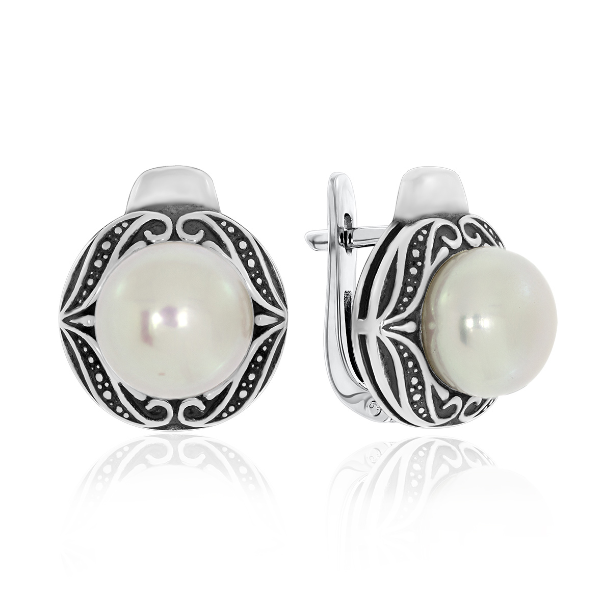Серьги для женщин из серебра 925 пробы с жемчугом из коллекции Афродита артикул 2310050866 от компании KRASNOE