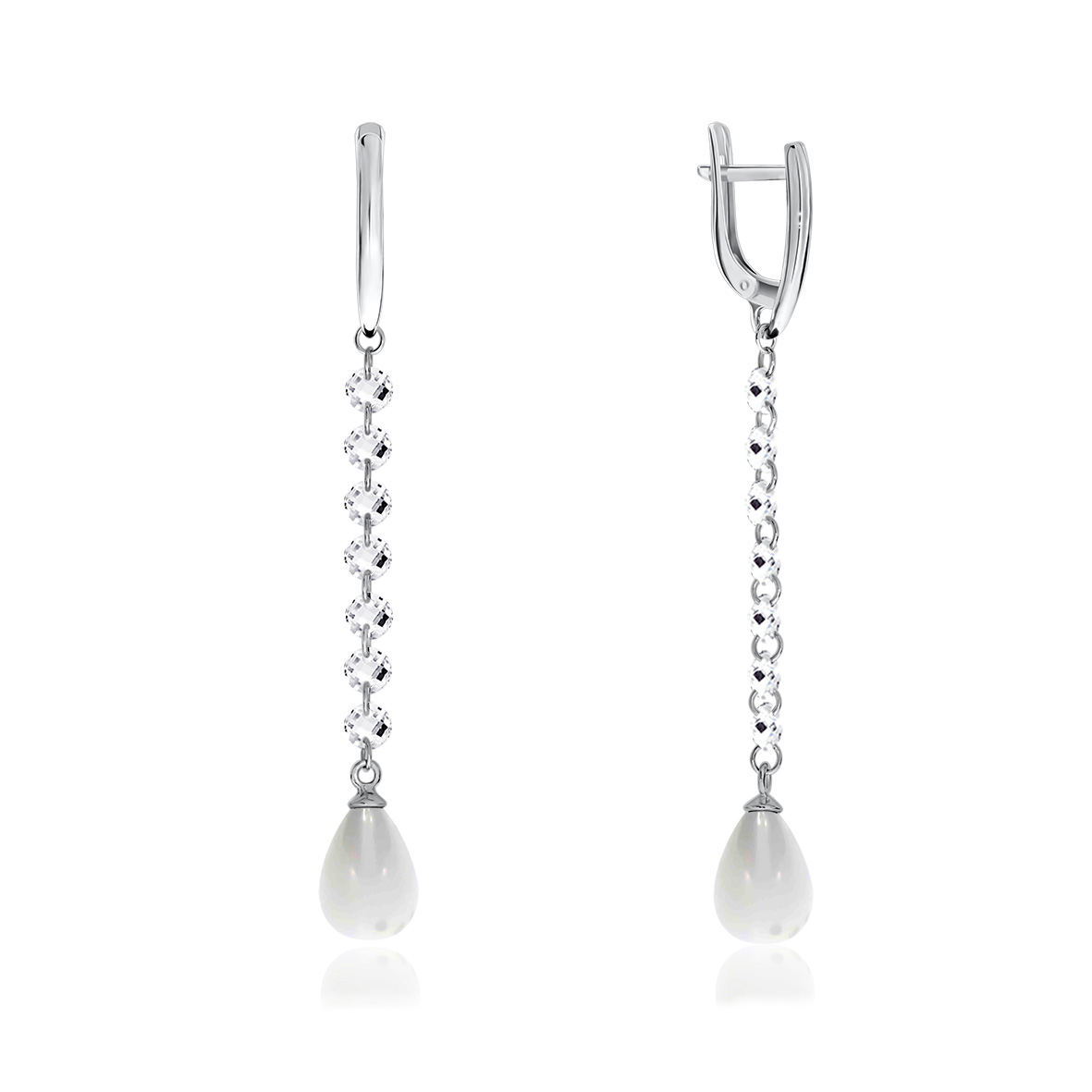 Серьги для женщин из серебра 925 пробы с жемчугом,фианитами из коллекции Невесомость артикул 2340240613-2 от компании KRASNOE