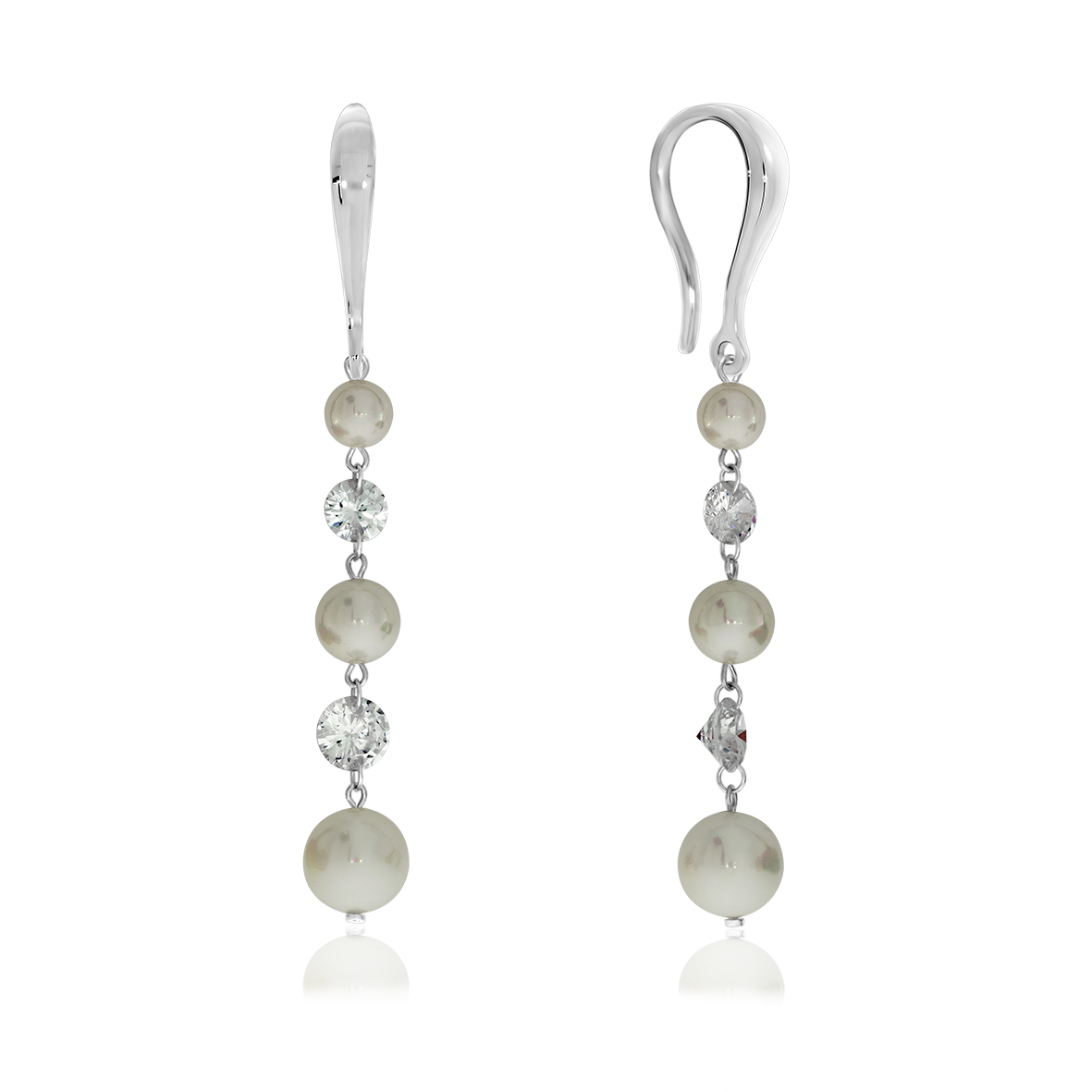 Серьги для женщин из серебра 925 пробы с фианитами,жемчугом из коллекции Невесомость артикул 2340240608 от компании KRASNOE