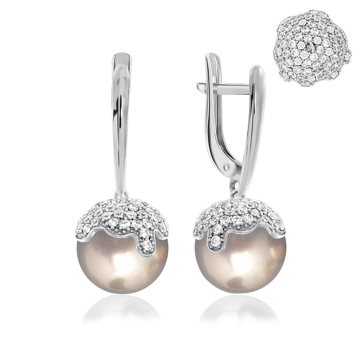 Серьги для женщин из серебра 925 пробы с жемчугом,фианитами из коллекции Icecream артикул 2340240807л-21 от компании KRASNOE