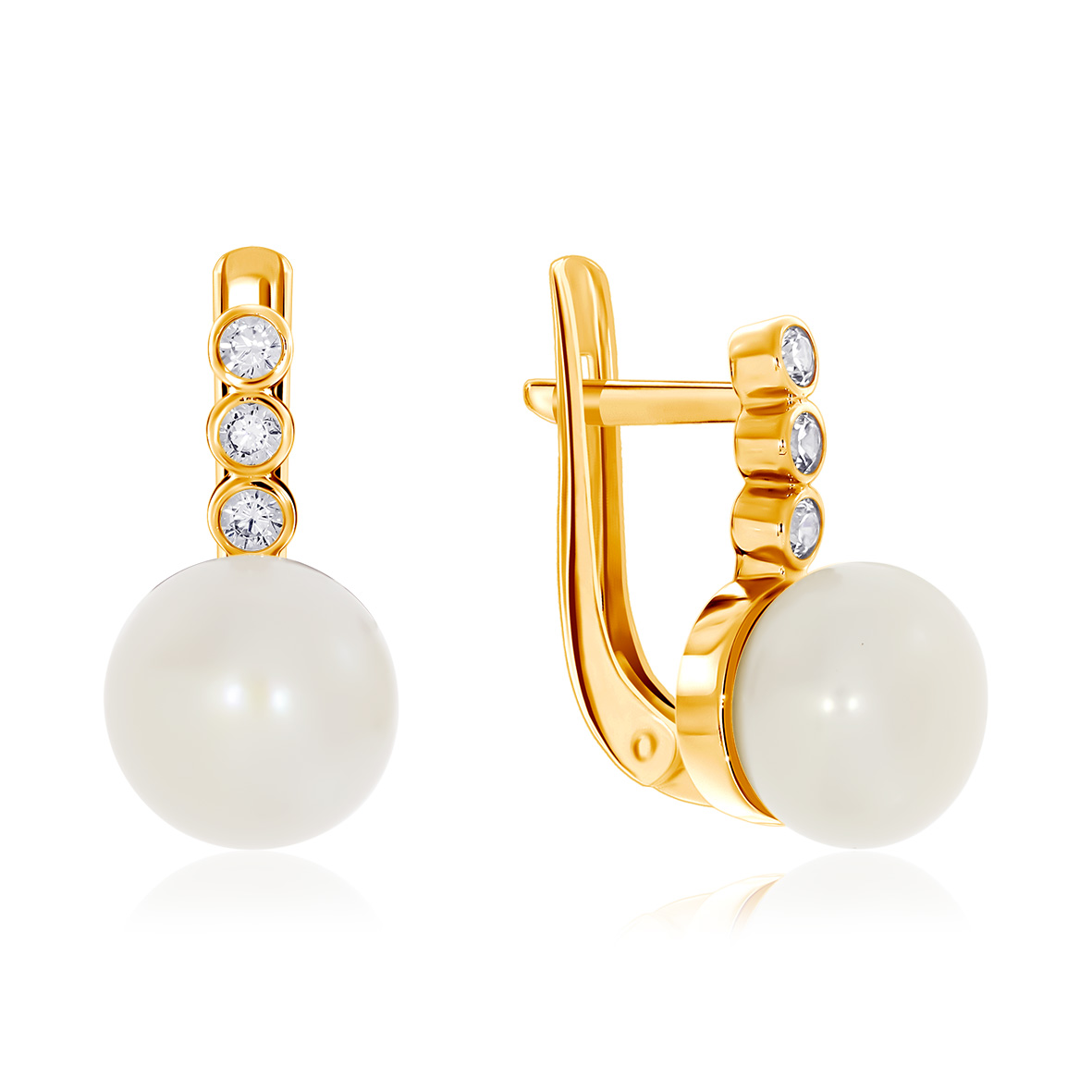 Серьги для женщин из серебра 925 пробы с жемчугом,фианитами из коллекции Афродита артикул 2320050800л от компании KRASNOE