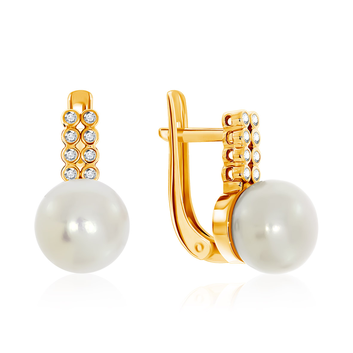 Серьги для женщин из серебра 925 пробы с жемчугами,фианитами из коллекции Афродита артикул 2320050805л от компании KRASNOE