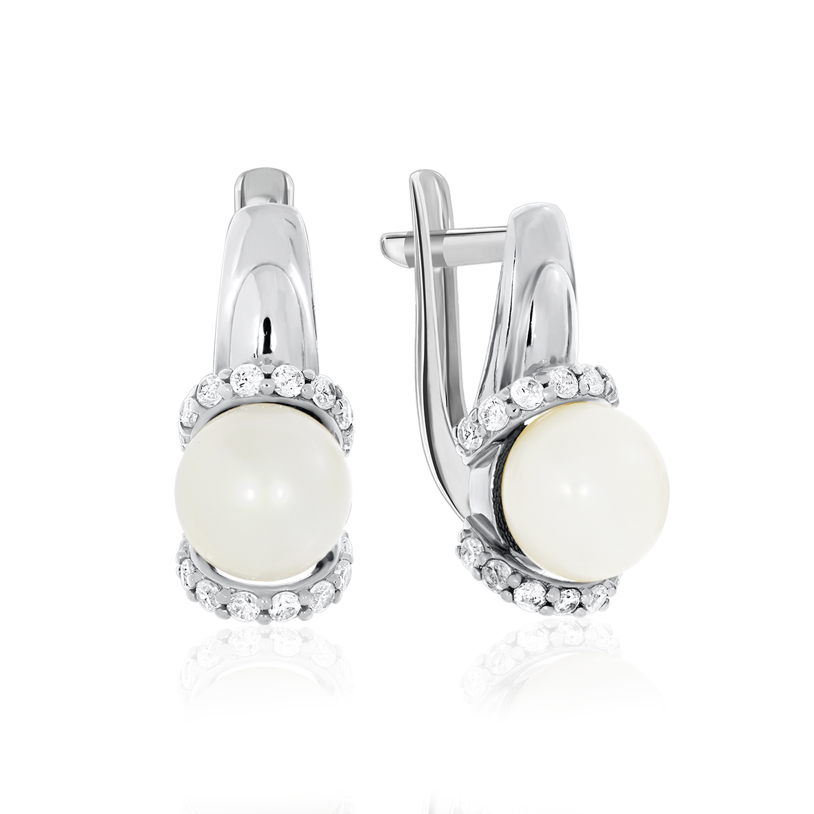 Серьги для женщин из серебра 925 пробы с жемчугами из коллекции Афродита артикул 2340050820л от компании KRASNOE
