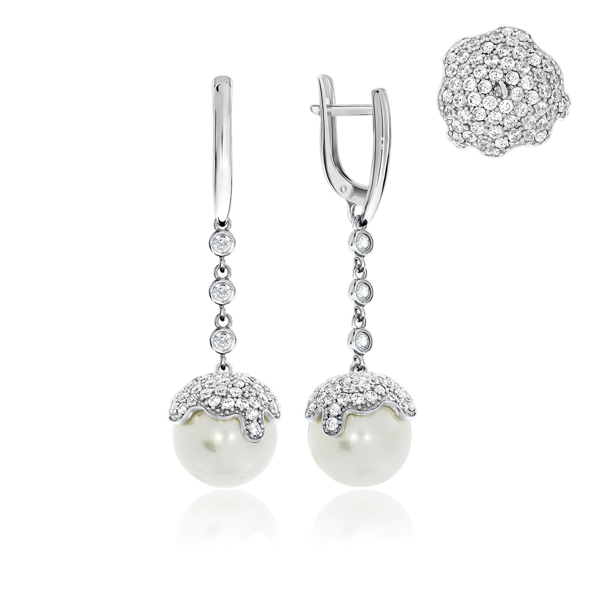 Серьги для женщин из серебра 925 пробы с жемчугом,фианитами из коллекции Icecream артикул 2340240814л-1 от компании KRASNOE