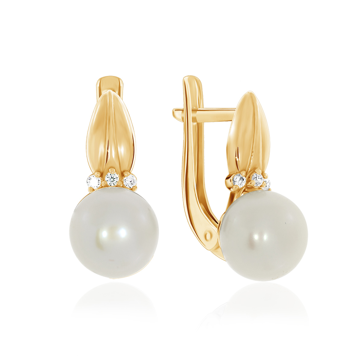 Серьги для женщин из серебра 925 пробы с жемчугом,фианитами из коллекции Афродита артикул 2320050893 от компании KRASNOE