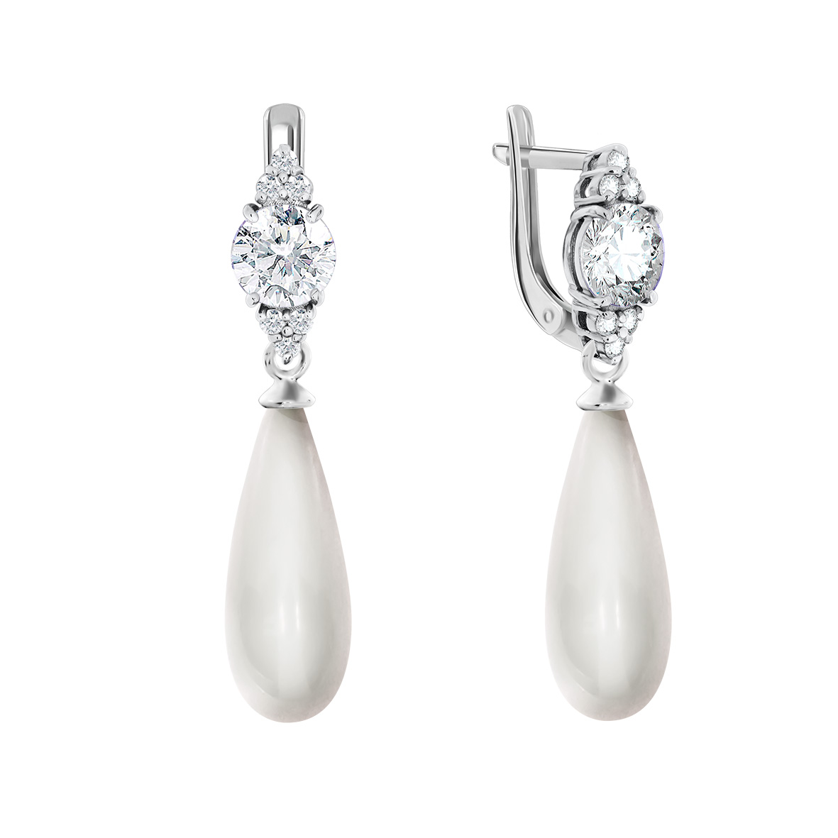 Серьги для женщин из серебра 925 пробы с жемчугом,фианитами из коллекции Афродита артикул 2340244654-2 от компании KRASNOE
