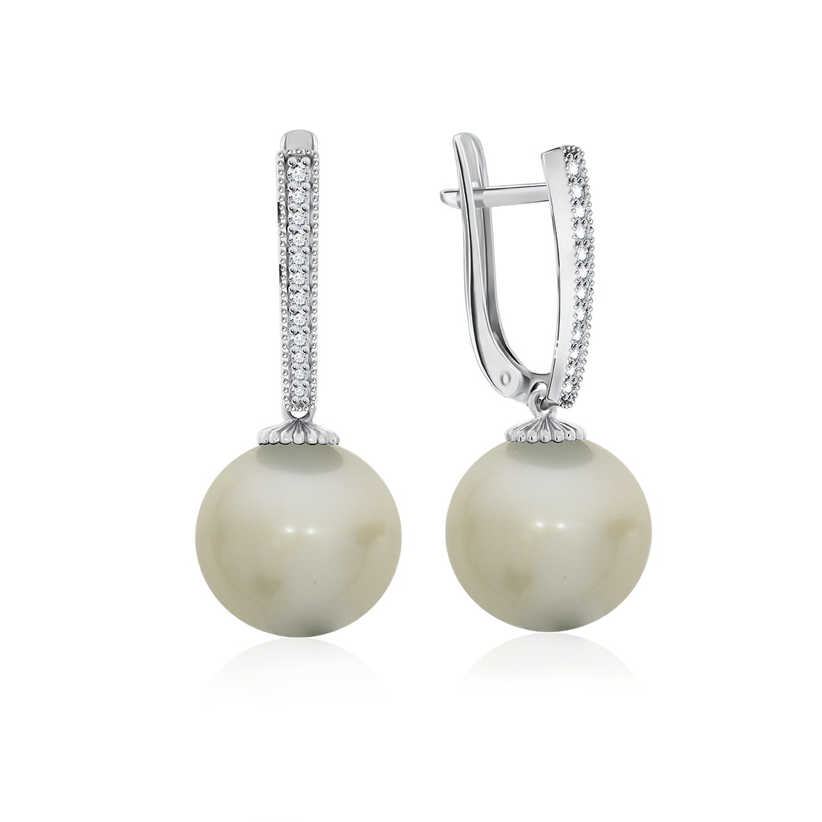 Серьги для женщин из серебра 925 пробы с жемчугами,фианитами из коллекции Шанель артикул 2340240822л от компании KRASNOE