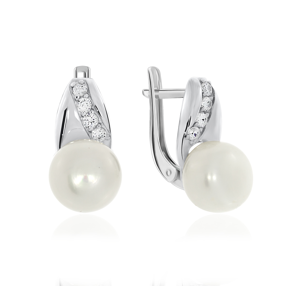 Серьги для женщин из серебра 925 пробы с жемчугами,фианитами из коллекции Афродита артикул 2340050890 от компании KRASNOE