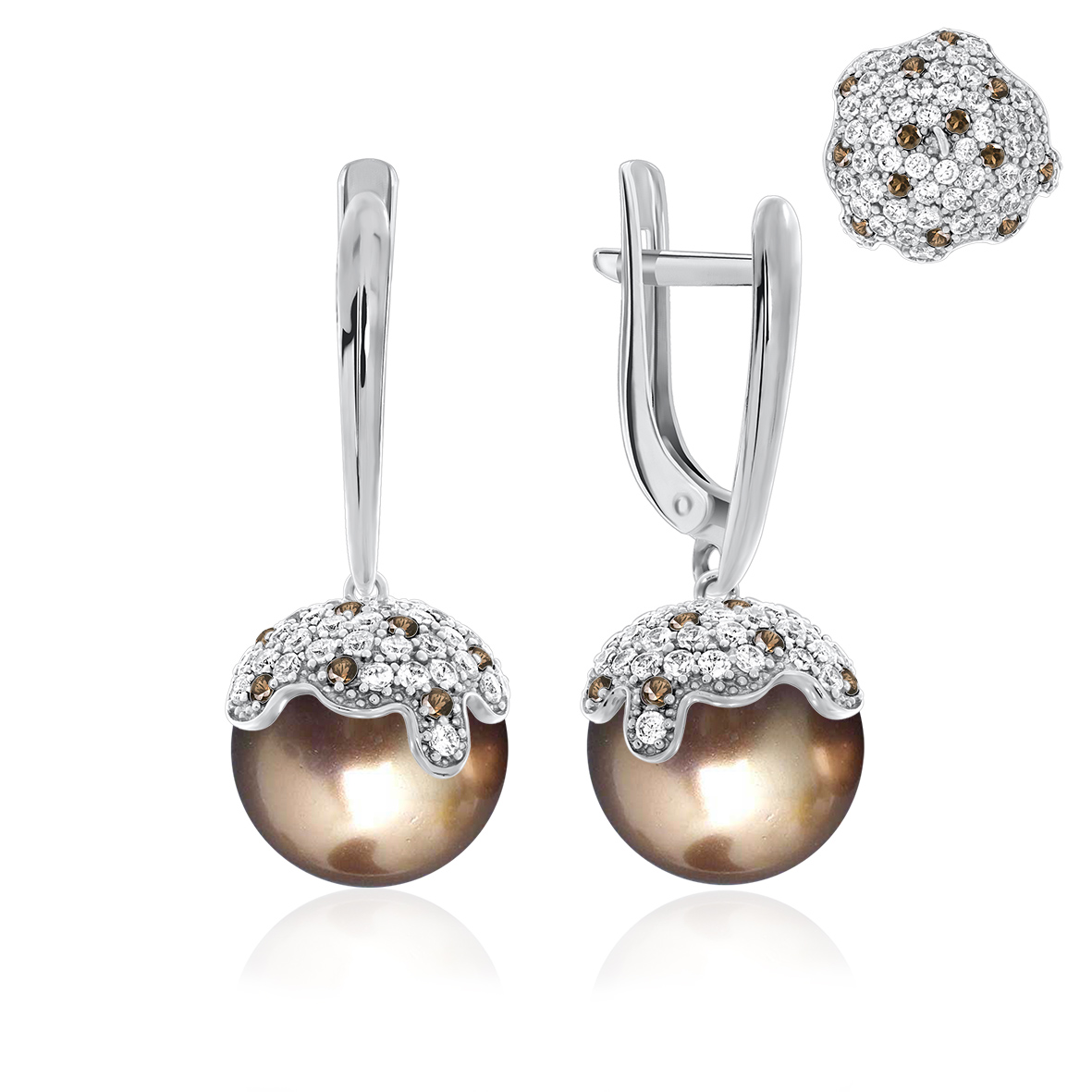 Серьги для женщин из серебра 925 пробы с жемчугом,ситаллами,фианитами из коллекции Icecream артикул 2340240807л-43 от компании KRASNOE