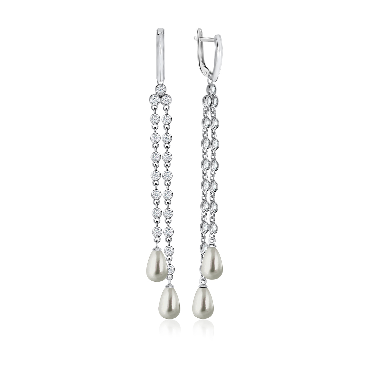 Серьги для женщин из серебра 925 пробы с жемчугом,фианитами из коллекции Icecream артикул 2340240841л от компании KRASNOE