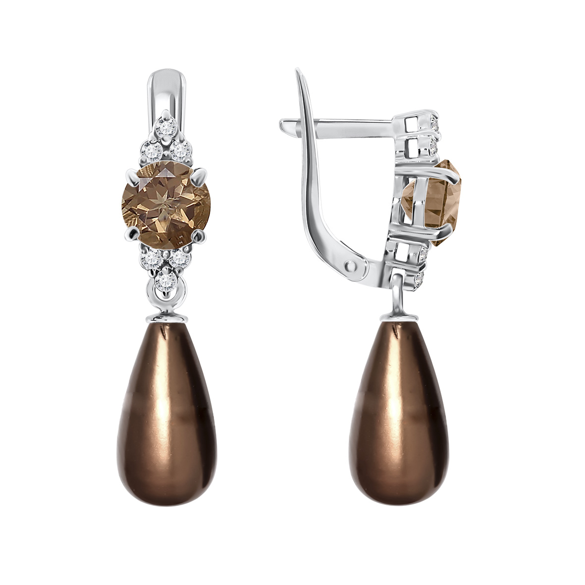 Серьги для женщин из серебра 925 пробы с жемчугом,фианитами артикул 2R604654-26