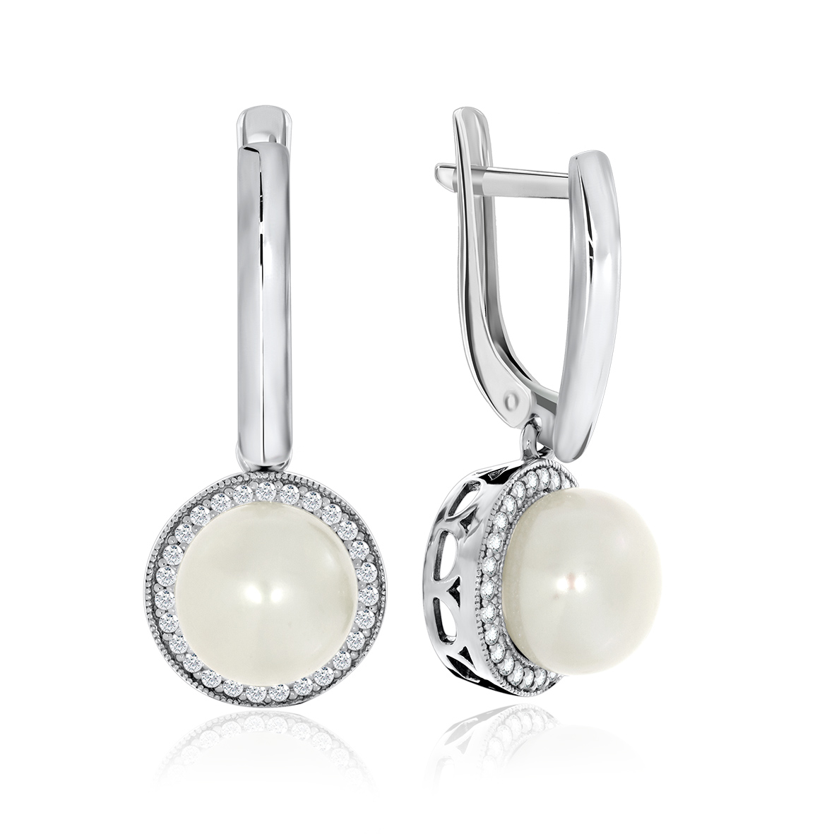 Серьги для женщин из серебра 925 пробы с жемчугом из коллекции Афродита артикул 2340050806л-1 от компании KRASNOE