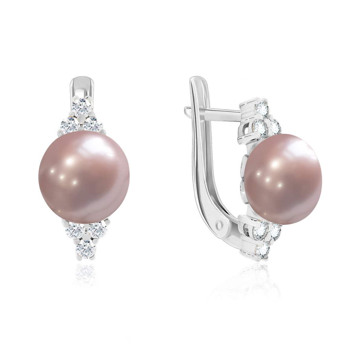 Серьги для женщин из серебра 925 пробы с жемчугом,фианитами из коллекции Афродита артикул 2340050802л-30 от компании KRASNOE