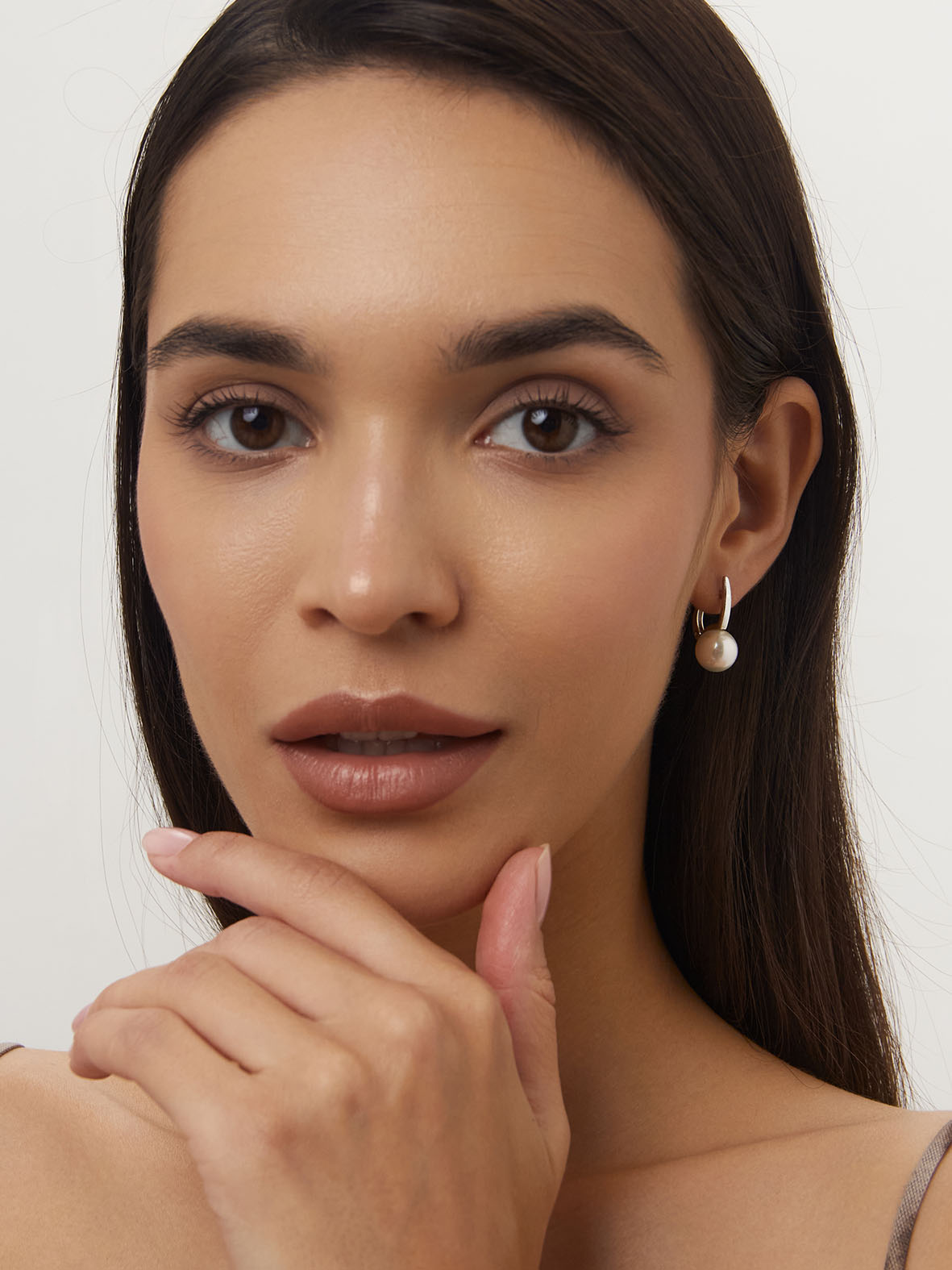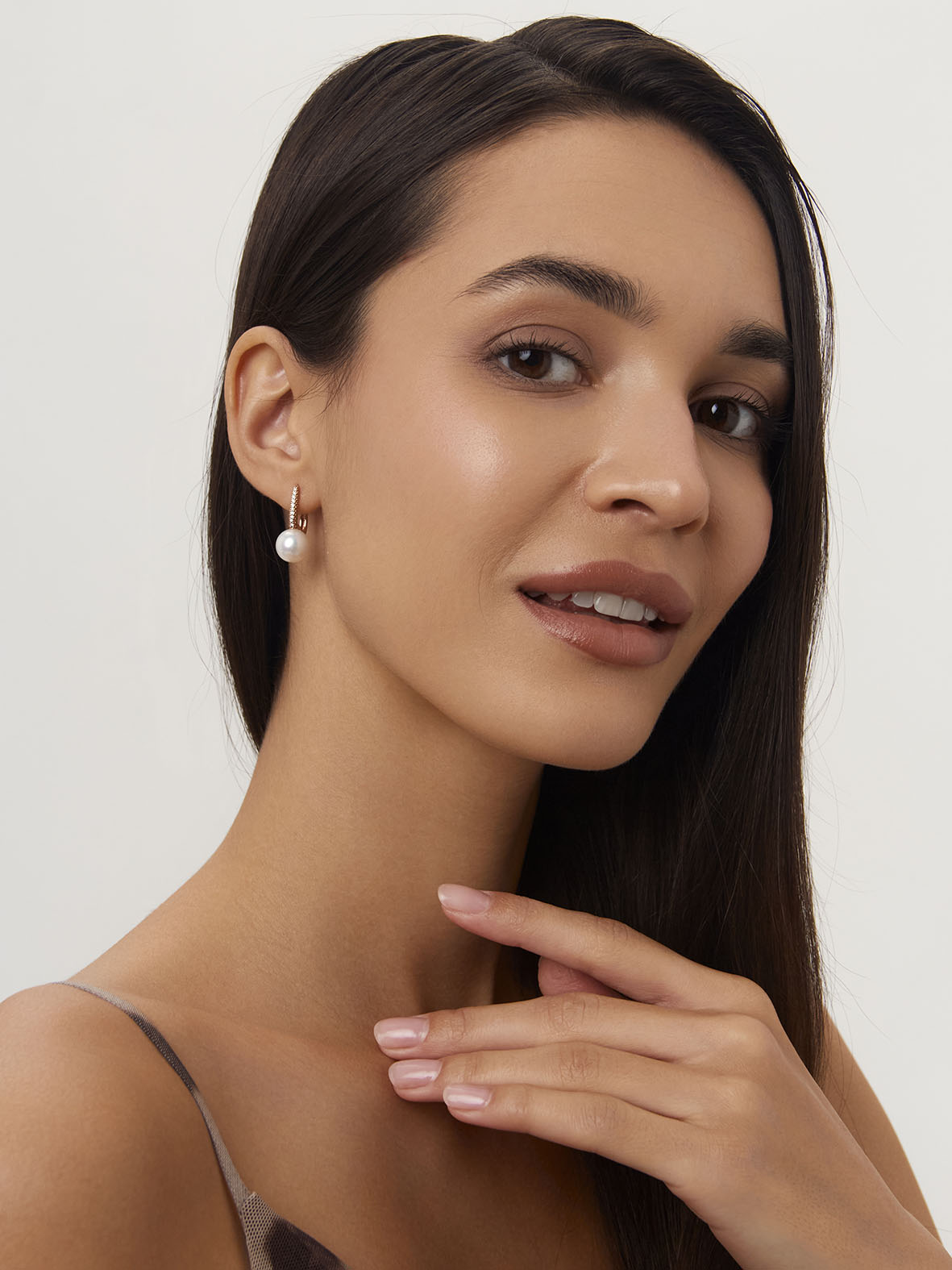 Серьги для женщин из серебра 925 пробы с жемчугами,фианитами из коллекции Шанель артикул 2320241606л от компании KRASNOE