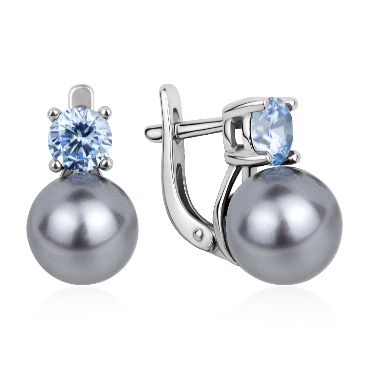 Серьги для женщин из серебра 925 пробы с жемчугами,фианитами из коллекции Дуэт артикул 2340245657-22 от компании KRASNOE