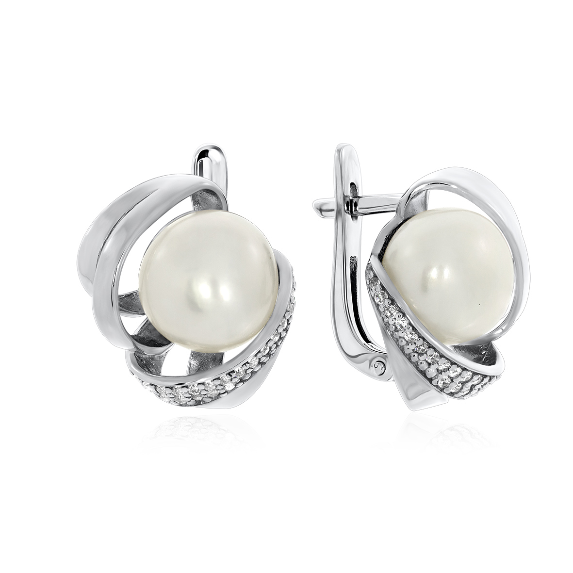 Серьги для женщин из серебра 925 пробы с жемчугом,жемчугом,фианитами из коллекции Афродита артикул 2310050861 от компании KRASNOE