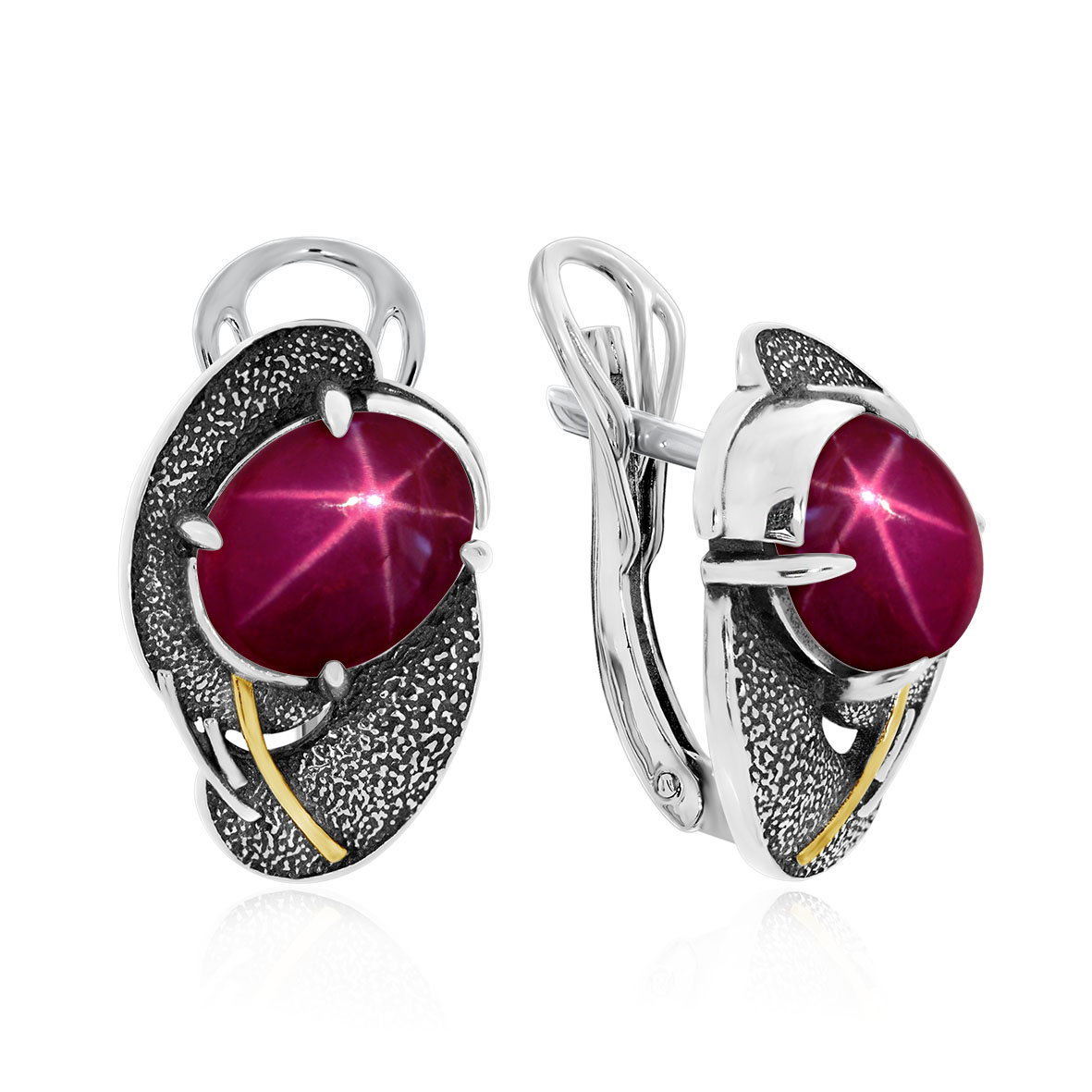 Серьги для женщин из серебра 925 пробы с рубинами звездчатыми из коллекции Vintage артикул 2317942395-3 от компании KRASNOE
