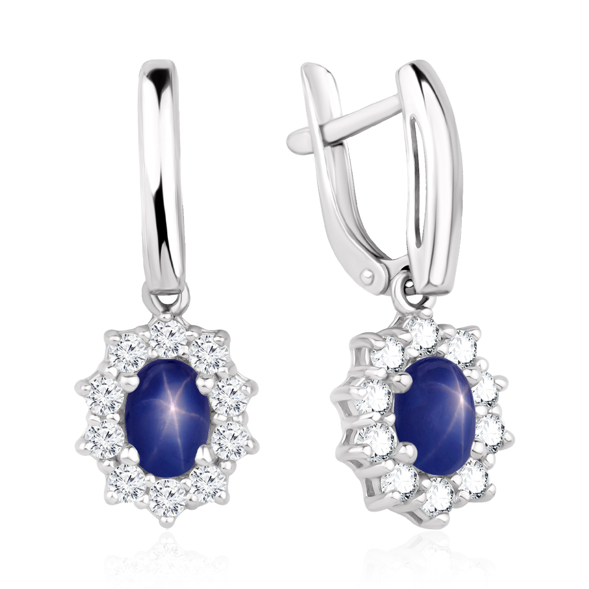 Серьги для женщин из серебра 925 пробы с звездчатыми сапфирами,фианитами из коллекции Royals артикул 2340943604-8 от компании KRASNOE