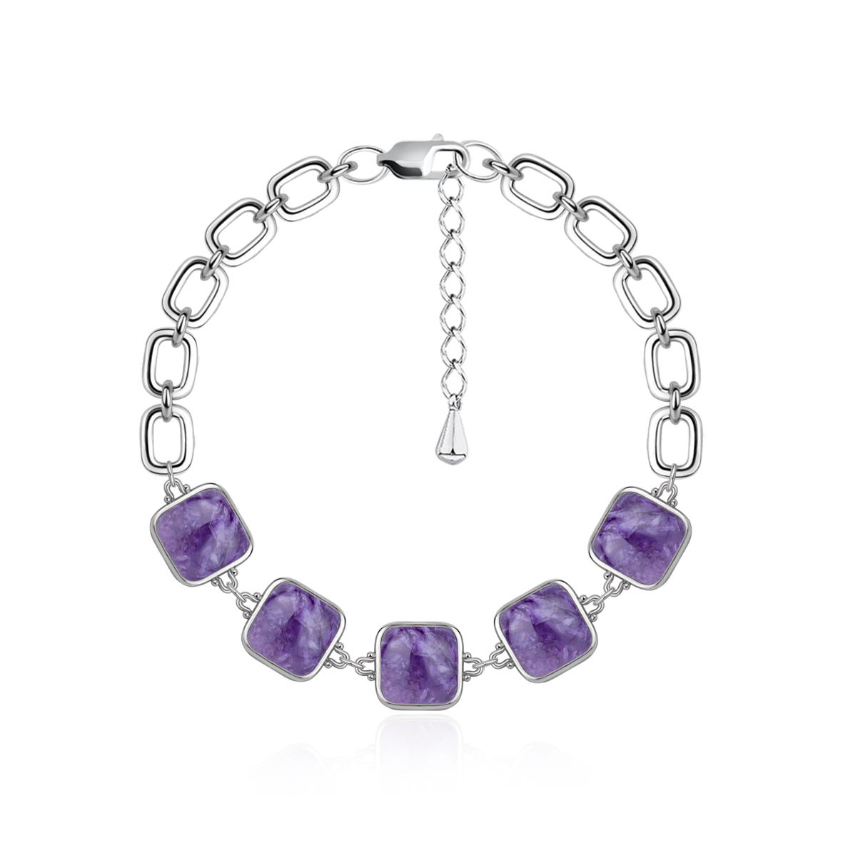 Браслет для женщин из серебра 925 пробы с чароитами из коллекции Уральские самоцветы артикул 4340466376-190 от компании KRASNOE