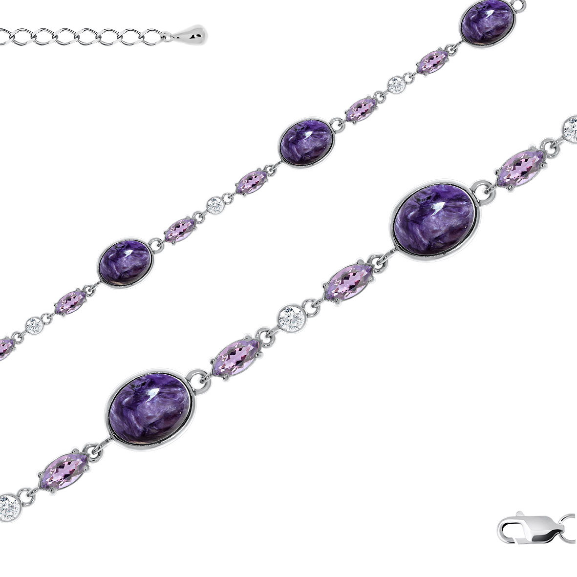 Браслет для женщин из серебра 925 пробы с чароитами,фианитами из коллекции Уральские самоцветы артикул 4340462509л-17 от компании KRASNOE