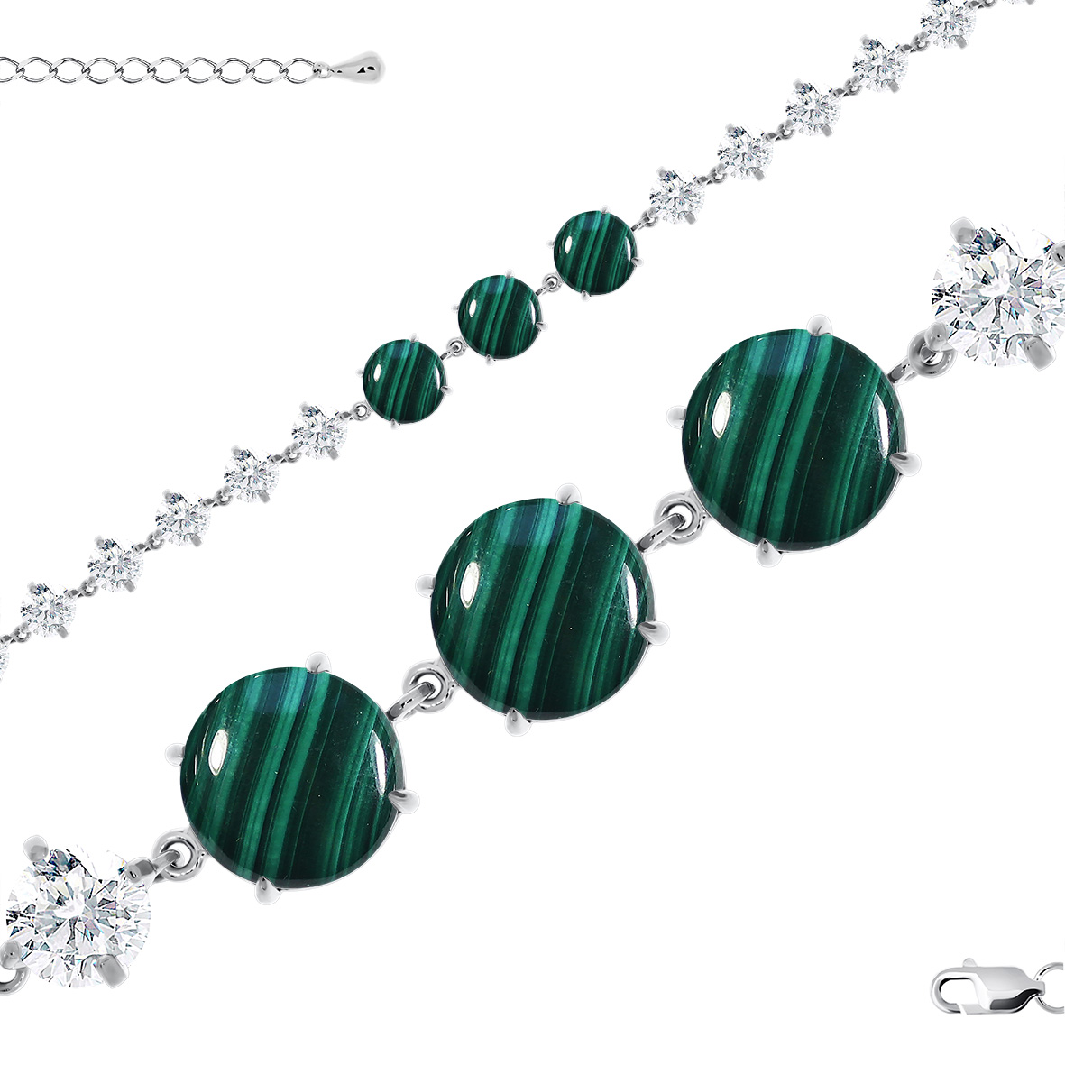 Браслет для женщин из серебра 925 пробы с малахитами,фианитами из коллекции Уральские самоцветы артикул 4340382508-18 от компании KRASNOE