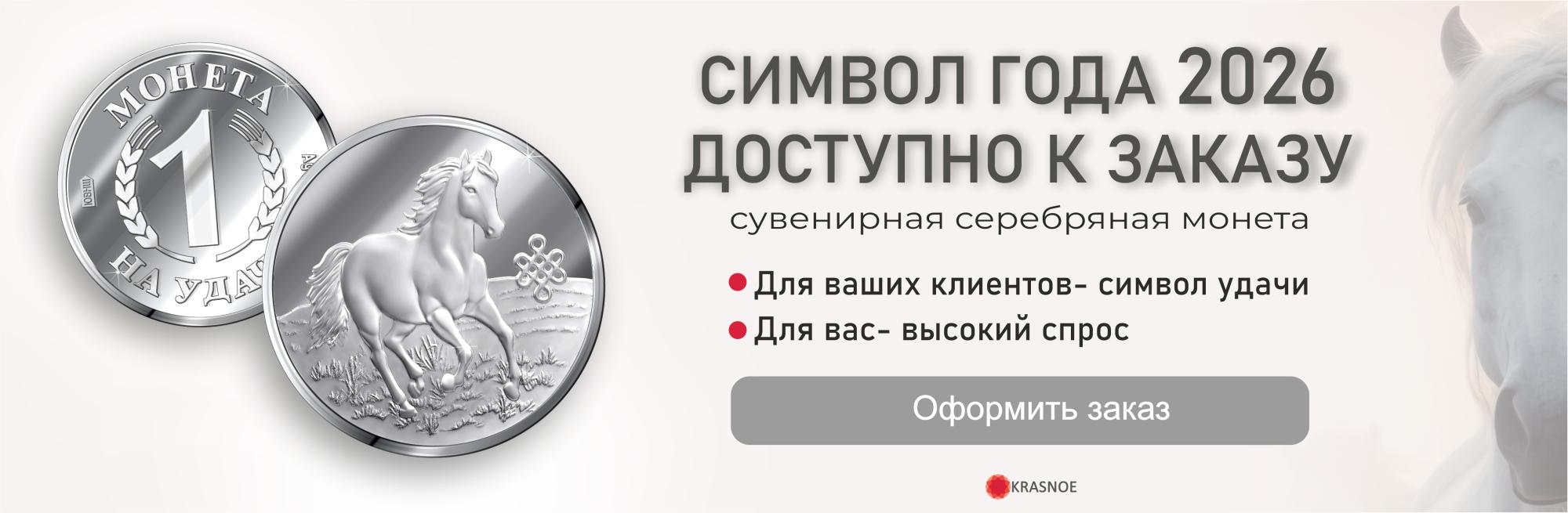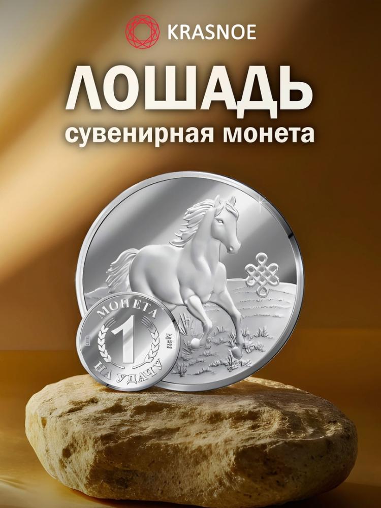 Серебряная монета с изображением. Лошадь - символ 2026 года.